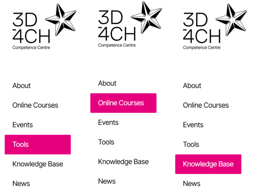 Menu Internetowego Centrum Kompetencji 3D umożliwia użytkownikom wybór własnej ścieżki rozpoczęcia pracy z platformą.
